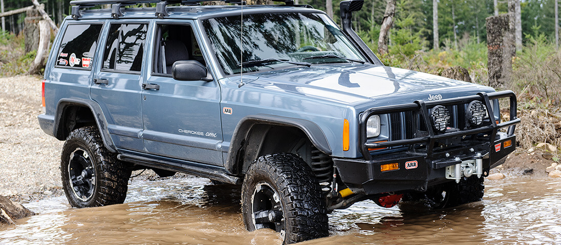 Disponibles para el modelo de Jeep Cherokee con o sin buches la defensa Deluxe es compatible con selectos winches de Warn, Simittybitl, y Bushranger. Un panel covertor del winche es proveido para cuando el winche aún no ha sido instalado. Para complementar la defensa, ARB ofrece un kit de exploradoras opcionales.